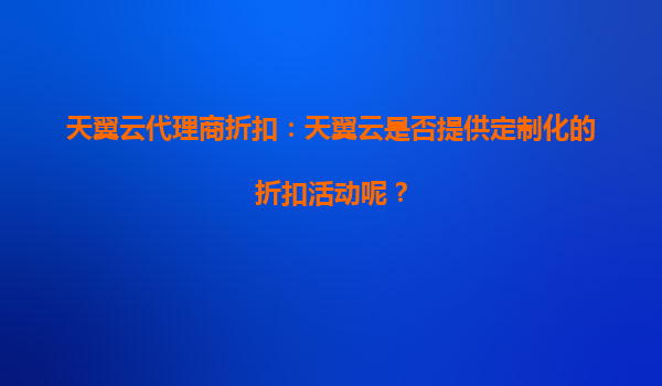 天翼云代理商折扣:天翼云是否提供定制化的折扣活动? 一、天翼云代理商折扣政策概述 天翼云作为中国电信旗下的云计算服务品牌,凭借其强大的基础设施和资源整合能力,为代理商提供了灵活多样的折扣政策。...
