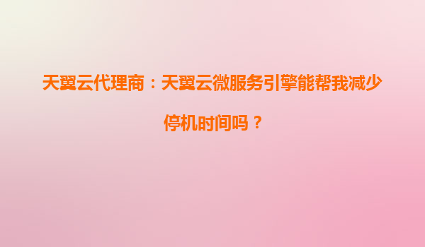 2025-09-26天翼云代理商:天翼云微服务引擎如何助力企业减少停机时间? 一、停机时间的挑战与微服务引擎的价值 在数字化时代,企业业务系统的稳定性和连续性至关重要。即使是短暂的停机也可能导致...