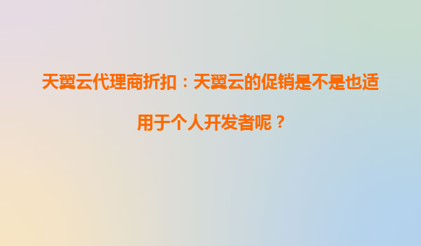 2025-09-26天翼云代理商折扣:天翼云的促销是否适用于个人开发者? 一、天翼云促销活动的覆盖范围 天翼云作为中国电信旗下的云计算服务品牌,近年来通过代理商体系推出了...