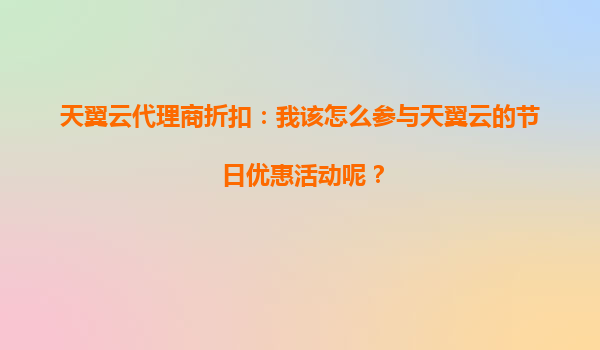 2025-09-26天翼云代理商折扣:我该怎么参与天翼云的节日优惠活动呢? 一、天翼云的节日优惠活动有哪些吸引力? 天翼云作为中国电信旗下的云计算品牌,凭借其强大的基础设施、稳定的服务能力以及丰富的产品线...