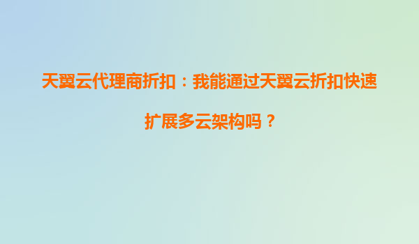 2025-09-23天翼云代理商折扣:能通过天翼云快速扩展多云架构吗? 一多云时代的机遇与挑战 在企业数字化转型的浪潮中,多云架构凭借其灵活性、资源优化和风险分散等优势,...