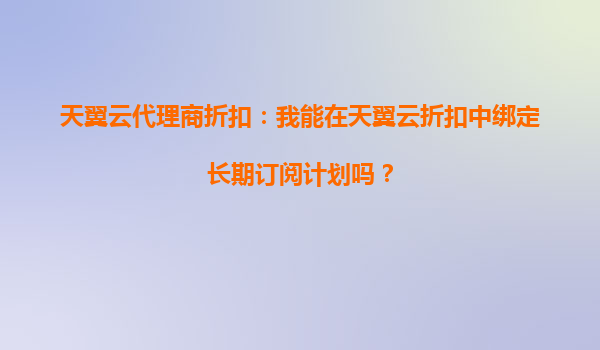 2025-09-23天翼云代理商折扣:我可以通过天翼云活动节省云备份费用吗? 一、天翼云代理商折扣的价值解析 天翼云作为中国电信旗下的云计算服务品牌,凭借国企背景和强大的基础设施能力,为用户提供高性价...