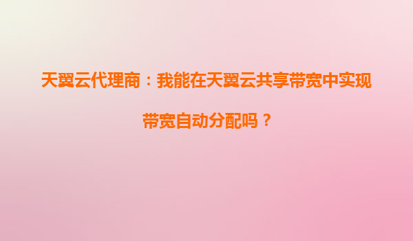 2025-09-23天翼云代理商:天翼云共享带宽如何实现灵活计费 一、天翼云共享带宽的核心优势 随着企业数字化进程加速,网络带宽资源的灵活配置成为刚需。天翼云作为中国电信旗下云计算品牌,其共享带宽服务通过创新模式解决...