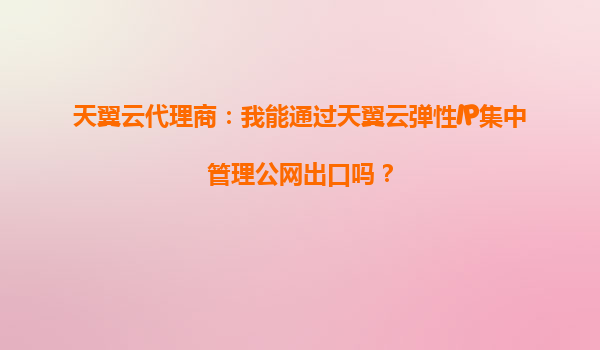 2025-09-22天翼云代理商:如何通过天翼云弹性IP集中管理公网出口? 在数字化时代,企业对于公网出口的管理需求越来越高。天翼云作为中国电信旗下的云计算服务商,提供了弹性IP等一系列网络服务,帮助企业实现更高效、更灵活...
