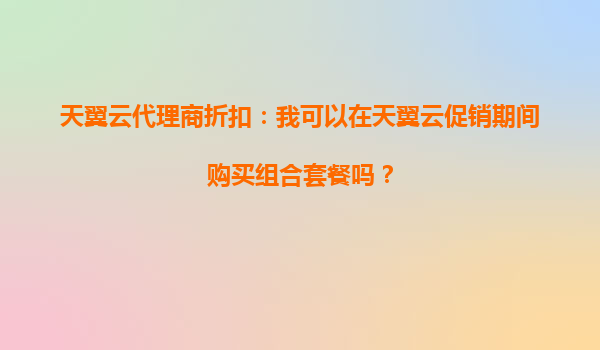 天翼云代理商折扣:促销期间购买组合套餐的全面指南 引言 随着企业数字化转型的加速,云计算服务成为众多企业的首选。天翼云作为中国电信旗下的云服务品牌,凭借其强大的技术实力和优质的...