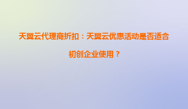 2025-09-21天翼云代理商折扣:天翼云优惠活动是否适合初创企业使用? 引言 在数字化转型的浪潮中,云计算已成为企业发展的关键基础设施。对于初创企业而言,如何在有限的...