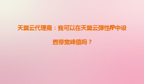 2025-09-19弹性IP与带宽峰值设置:天翼云代理商的灵活选择 作为天翼云代理商,客户经常询问是否能在弹性IP中设置带宽峰值。答案是肯定的!天翼云的弹性IP服务不仅支持自定义带宽峰值,还能根据业务需求随时调整,为代理商和终...