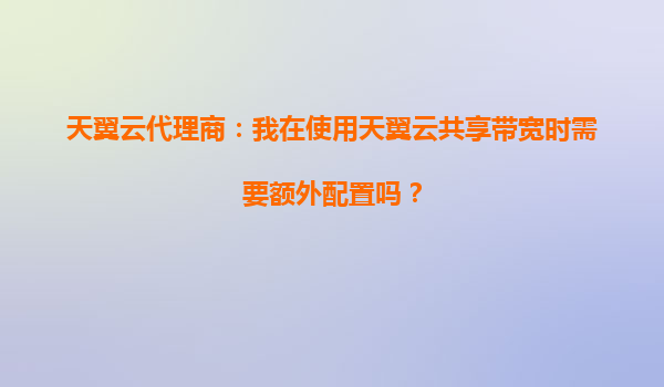 2025-09-19天翼云共享带宽的配置便捷性 作为天翼云代理商,我们经常被客户询问是否需要额外配置才能使用共享带宽服务。实际上,天翼云共享带宽的设计初衷就是简化操作流程,用户只需在控制台简单几步即可完成接入,无需复杂...