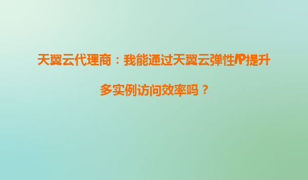 2025-09-19天翼云代理商:我能通过天翼云弹性IP提升多实例访问效率吗? 引言 在当今快速发展的云计算时代,企业和开发者对高效、灵活的云资源管理需求日益增长。天翼云作为中国电信旗下的云计算服务品牌,凭借其...