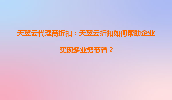 2025-09-19天翼云代理商折扣如何帮助企业实现多业务节省 引言:数字化转型中的成本挑战 在数字化转型的浪潮中,企业上云已成为提高效率、增强竞争力的关键路径。然而,随着业务规模的扩大和多样化...