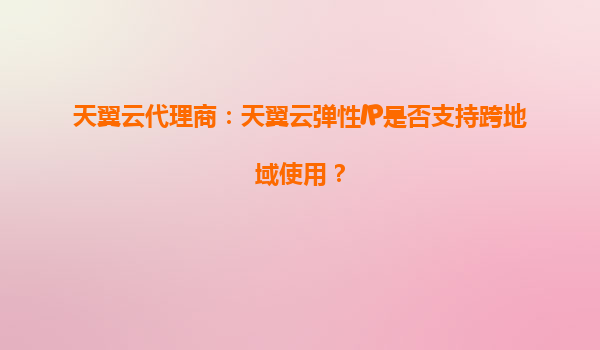 2025-09-18天翼云弹性IP的跨地域使用解析 在云计算领域,弹性IP(EIP)是企业构建灵活网络架构的重要资源。天翼云作为中国电信旗下领先的云服务提供商,其弹性IP功能备受关注。许多用户特别是天翼云代理商常会问到一个核心...