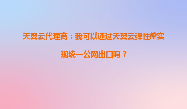2025-09-18天翼云代理商:通过天翼云弹性IP实现统一公网出口 在当今数字化转型的浪潮中,企业对于网络架构的灵活性、安全性和成本效益提出了更高的要求。天翼云作为国内领先的云服务提供商,其弹性IP功能为企业...