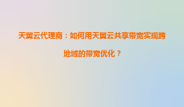天翼云代理商:如何用天翼云共享带宽实现跨地域的带宽优化? 一、天翼云共享带宽的技术优势 天翼云作为中国电信旗下的云计算服务品牌,依托运营商级的网络基础设施,其共享带宽服务具备以下核...