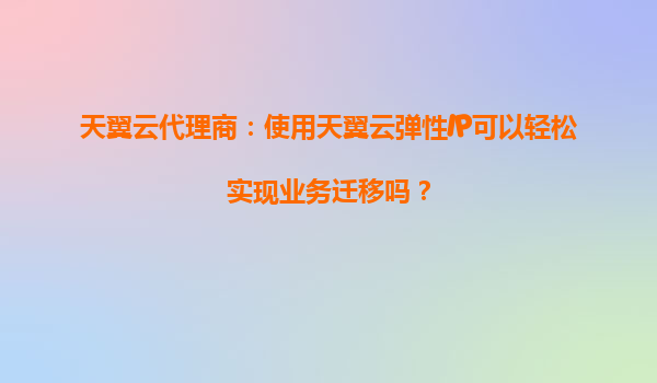 2025-09-18天翼云代理商:使用天翼云弹性IP可以轻松实现业务迁移吗? 一、天翼云弹性IP的核心优势 天翼云弹性IP(ElasticIP)是一种可以动态绑定到云服务器实例的公网IP资源,具有以下核心优势: 灵活...