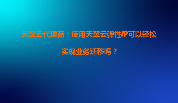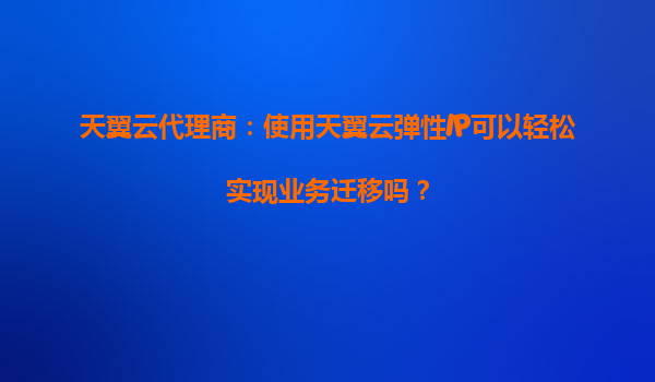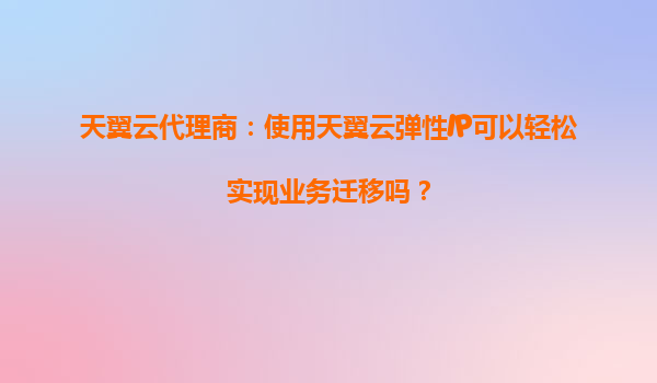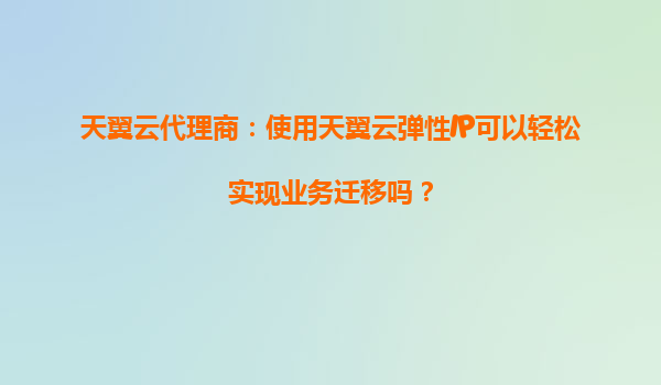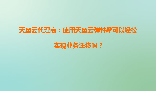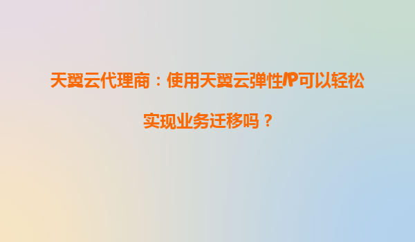 天翼云代理商:使用天翼云弹性IP可以轻松实现业务迁移吗? 一、天翼云弹性IP的核心优势 天翼云弹性IP(ElasticIP)是一种可以动态绑定到云服务器实例的公网IP资源,具有以下核心优势: 灵活...