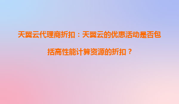 2025-09-17天翼云高性能计算资源的代理商优惠政策解析 云计算市场竞争日趋激烈,各大云服务商纷纷通过价格策略吸引企业用户。作为中国电信旗下核心云品牌,天翼云凭借其独特的资源优势和灵活的代理商政策,在高性能计算(HPC...