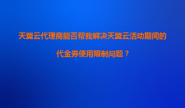 2025-11-05天翼云代理商能否帮我解决天翼云活动期间的代金券使用限制问题? 一、代金券使用限制的常见情况 在天翼云活动期间,用户可能会遇到代金券无法正常使用或存在使用限制的情况,例如: ...