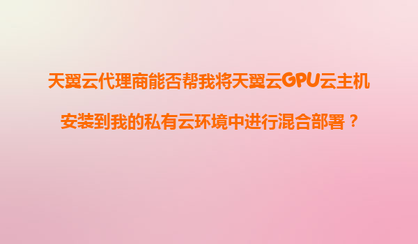 2025-11-05天翼云代理商能否帮助将天翼云GPU云主机部署至私有云实现混合架构? 一、问题解析:混合部署的核心需求 用户提出的问题涉及两个关键点:一是通过天翼云代理商渠道实现服务落地,二是将公...