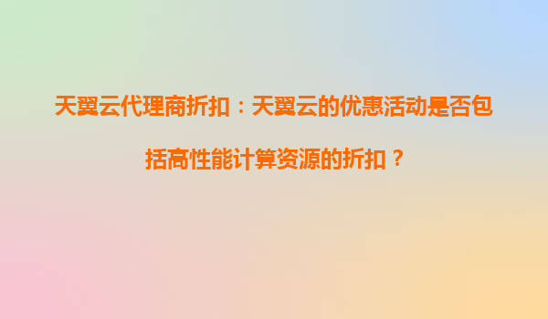 2025-09-17天翼云高性能计算资源的代理商优惠政策解析 云计算市场竞争日趋激烈,各大云服务商纷纷通过价格策略吸引企业用户。作为中国电信旗下核心云品牌,天翼云凭借其独特的资源优势和灵活的代理商政策,在高性能计算(HPC...