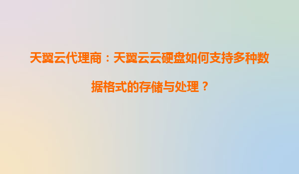 2025-09-16天翼云代理商:天翼云云硬盘如何支持多种数据格式的存储与处理? 一、天翼云云硬盘的核心能力 天翼云作为中国电信旗下的云计算服务品牌,其云硬盘产品(Elastic...