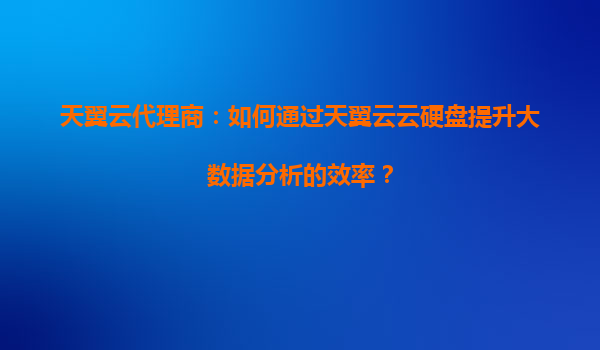2025-09-16天翼云代理商指南:如何通过云硬盘提升大数据分析效率 一、云硬盘的性能优势支撑大数据处理 天翼云云硬盘(ElasticVolumeService,EVS)提供高性能块存储服务,通...