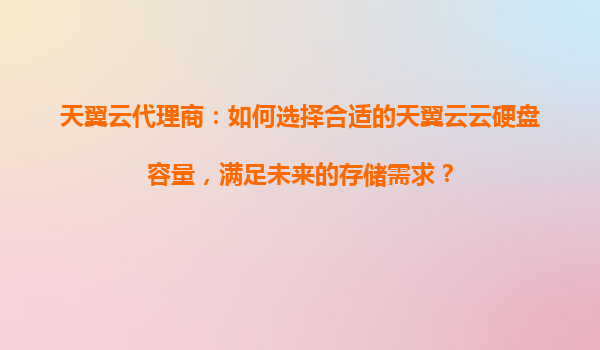 天翼云代理商:如何选择合适的天翼云云硬盘容量,满足未来的存储需求? 一、云硬盘选型的重要性 在数字化转型浪潮中,企业数据呈现爆发式增长,选择合适的云硬盘容量直接影响业务连续性...