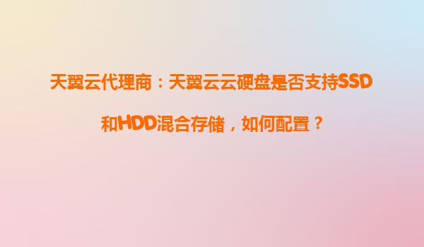 2025-09-16天翼云代理商:天翼云云硬盘是否支持SSD和HDD混合存储,如何配置? 一、天翼云云硬盘的存储类型优势 作为中国电信旗下的云计算服务品牌,天翼云凭借其强大的基础设施和完善的服务体系,在云存储领域占据重要地位。...