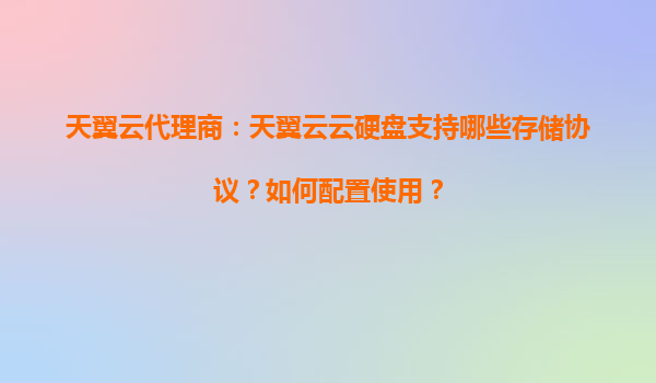 2025-09-16天翼云云硬盘存储协议与配置指南 作为中国电信旗下的云计算服务品牌,天翼云凭借其安全、稳定、高效的特性,已成为众多企业数字化转型的首选。其中,天翼云云硬盘作为重要的块存储服务,支持多种存储协议,并提供...