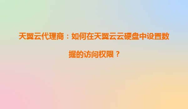 2025-09-16天翼云代理商:如何在天翼云云硬盘中设置数据的访问权限? 一、天翼云及其代理商的核心优势 天翼云作为中国电信旗下的云计算服务品牌,凭借央企背景和强大的基础设施能力,为用户提供安全可靠...