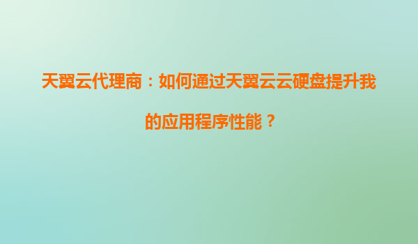 2025-09-16天翼云代理商:如何通过天翼云云硬盘提升我的应用程序性能? 一、天翼云云硬盘的技术优势 天翼云云硬盘(ElasticBlockStorage,EBS)是一种高性能、高可靠的块存储服务,专为企业级应用程序设计,具...