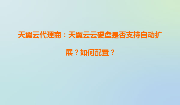 2025-09-16天翼云代理商:天翼云云硬盘是否支持自动扩展?如何配置? 一、天翼云云硬盘的核心优势 天翼云作为中国电信旗下的云计算品牌,凭借其资源、安全性和本地化服务能力,在企业级市场中占据...