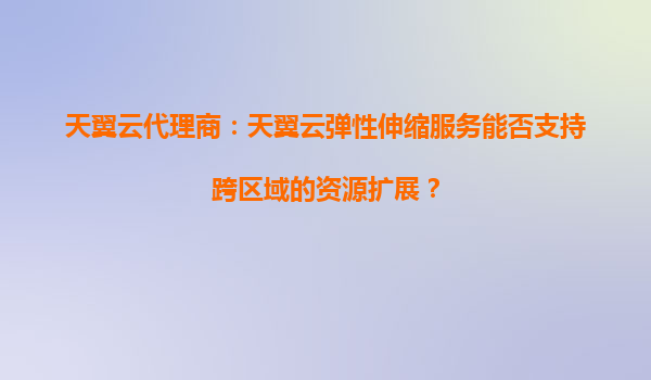 2025-09-16天翼云代理商:天翼云弹性伸缩服务能否支持跨区域的资源扩展? 一、天翼云弹性伸缩服务概述 天翼云弹性伸缩服务(AutoScaling)是一项基于业务负载动态调整计算资源的智能服务,能够根...