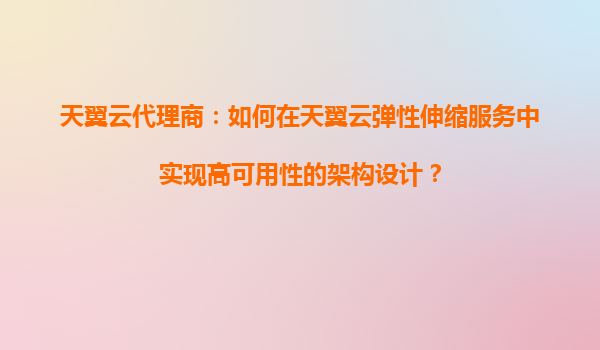 2025-09-16天翼云代理商:如何在天翼云弹性伸缩服务中实现高可用性的架构设计? 一、高可用性架构的核心意义 在云计算环境中,高可用性(HighAvailability,HA)是保障业...
