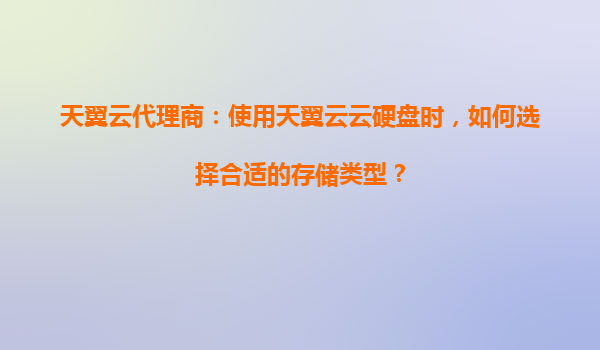 2025-09-16天翼云代理商:使用天翼云云硬盘时,如何选择合适的存储类型? 一、天翼云硬盘概述 天翼云作为中国电信旗下的云计算服务品牌,凭借其强大的基础设施和央企背景,为企业用户提供了稳定、安全、高效的云存储解决...