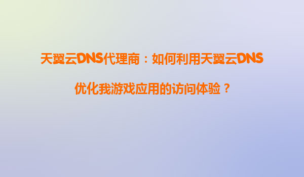 2025-09-16天翼云DNS代理商:如何利用天翼云DNS优化游戏应用的访问体验? 一、天翼云DNS的核心优势 天翼云DNS是中国电信旗下的智能域名解析服务,依托全球覆盖的节点网络和电信级基础设施,为游戏应用提供高稳定...