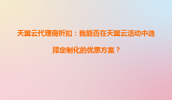 2025-09-16天翼云代理商折扣:定制化优惠方案的灵活性 天翼云作为中国电信旗下的云计算服务品牌,凭借其强大的资源支持和丰富的产品矩阵,为代理商与企业用户提供了极具竞争力的折扣政策。在各类营销活动中,天翼...