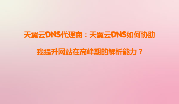 2025-09-16天翼云DNS代理商:天翼云DNS如何协助我提升网站在高峰期的解析能力? 一、解析能力的瓶颈与挑战 在网站流量高峰期,许多企业常常面临DNS解析延迟、解析失败甚至...