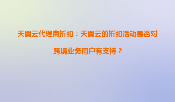 2025-09-16天翼云代理商折扣:天翼云的折扣活动是否对跨境业务用户有支持? 天翼云代理商折扣活动概述 天翼云作为中国电信旗下的云计算服务提供商,近年来在国内外市场均取得了显著的成绩。其代理...