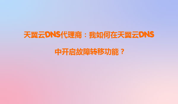天翼云DNS代理商指南:如何开启天翼云DNS故障转移功能 一、什么是天翼云DNS故障转移功能? 天翼云DNS故障转移(Failover)是保障业务连续性的核心功能,当监测到主服务器不可用时,系统会自动...