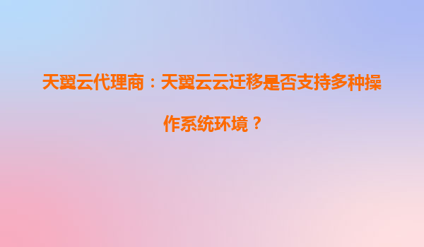 2025-09-16天翼云代理商解析:天翼云云迁移是否支持多种操作系统环境? 一、天翼云云迁移的核心能力 天翼云作为中国电信旗下的云计算服务品牌,凭借其强大的基础设施和技术积累,在云迁移领域提供了广泛的兼...