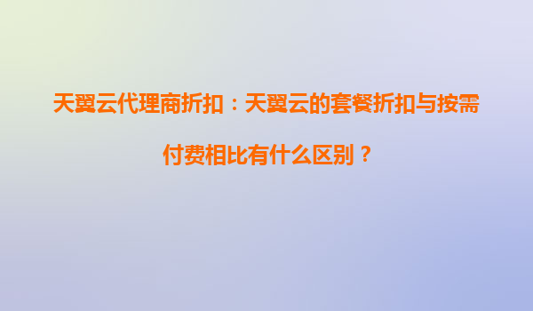 2025-09-16天翼云代理商折扣:套餐折扣与按需付费的区别及优势解析 随着云计算技术的不断发展,越来越多的企业开始选择云服务来优化IT资源。作为中国领先的云服务提供商,天翼云凭借其强大的基础设施和丰富的产品线吸引了众...