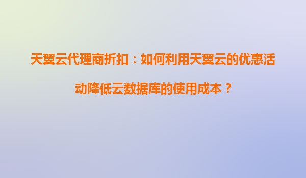 2025-09-16如何利用天翼云代理商的折扣政策降低云数据库成本 天翼云的优势与市场竞争力 作为中国电信旗下的云计算服务品牌,天翼云依托央企背景和强大的基础设施资源,为用户提供稳定、安全、高效的云服务。在云...