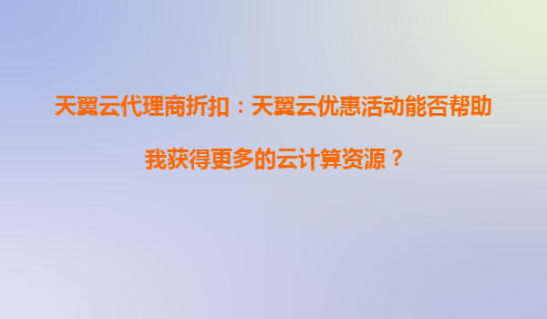 天翼云代理商折扣:天翼云优惠活动能否帮助我获得更多的云计算资源? 一、天翼云的核心优势 天翼云作为中国电信旗下的云计算品牌,凭借央企背景和强大的技术实力,在国内云计算市场占据...