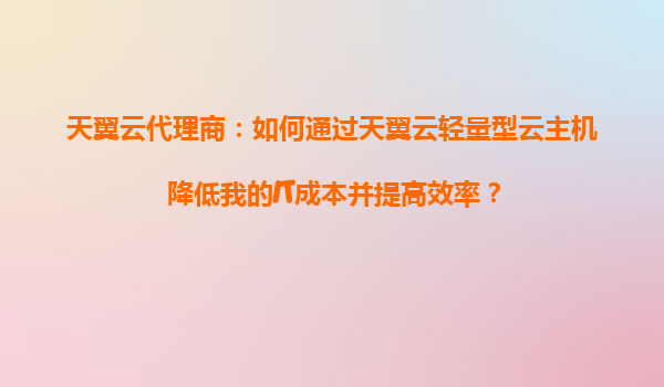 2025-09-16天翼云轻量型云主机:降低IT成本与提升效率的智能之选 轻量云主机的核心价值 在数字化转型浪潮中,企业对IT基础设施的需求日益细化。天翼云轻量型云主机凭借其"按需付费、开箱即用"的特性,成为中小企业及创...