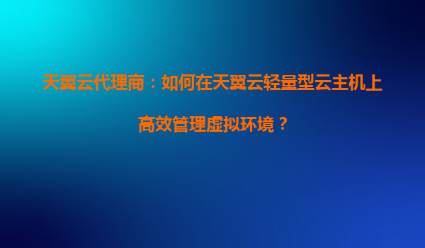 2025-09-16天翼云代理商:如何在天翼云轻量型云主机上高效管理虚拟环境? 一、天翼云轻量型云主机的核心优势 作为中国电信旗下的云计算服务品牌,天翼云凭借其国家队背景...