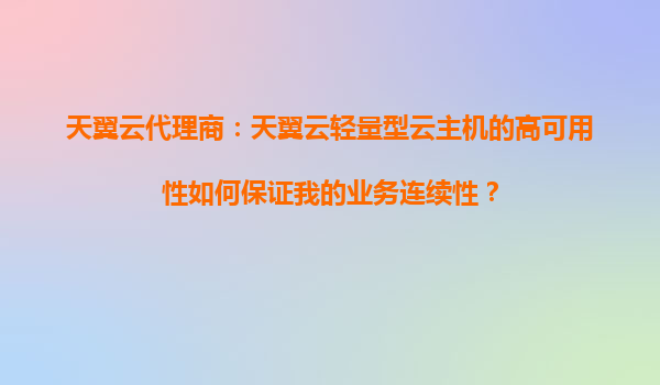 2025-09-16天翼云代理商:天翼云轻量型云主机的高可用性如何保证我的业务连续性? 一、引言 在数字化时代,业务连续性是企业发展的关键。无论是初创公司还是大型企业,都离不开稳定可靠的云计算服务支持。作为中...