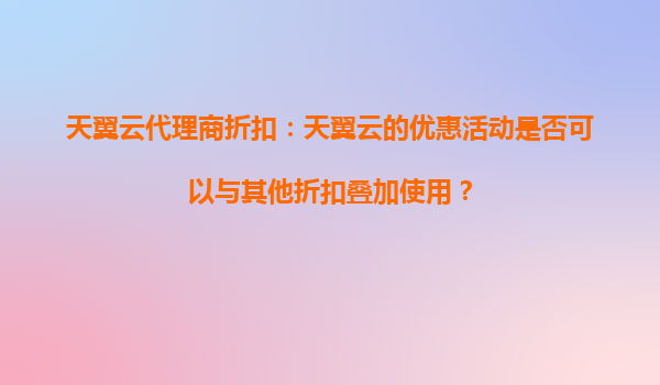 2025-09-16天翼云代理商折扣策略详解:优惠活动叠加规则与平台优势 一、天翼云代理商折扣的核心优势 作为中国电信旗下的云计算服务品牌,天翼云凭借央企背景和技术积淀,为代理商提供极具竞争力的折扣政策。其优...