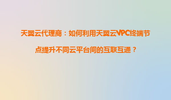 2025-09-16天翼云代理商:如何利用天翼云VPC终端节点提升不同云平台间的互联互通? 引言 随着企业数字化转型的加速,多云和混合云架构已成为主流趋势。在复杂的云环境中,如何实现不同云平台之间的安全高效互联,是企业面临的...