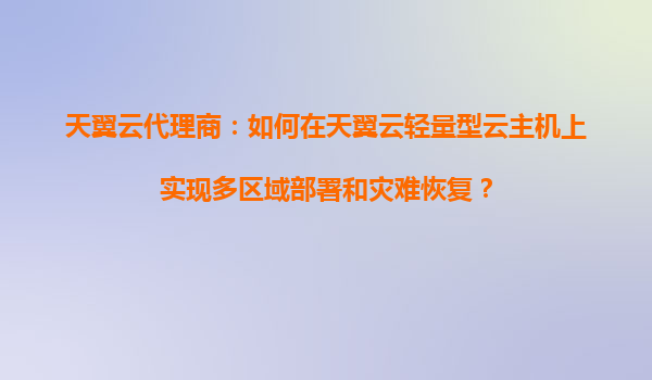 2025-09-16天翼云代理商:如何在天翼云轻量型云主机上实现多区域部署和灾难恢复? 一、天翼云轻量型云主机的核心优势 天翼云轻量型云主机(Lighthouse)是一种面向中小企...