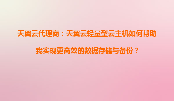 2025-09-16天翼云轻量型云主机:高效数据存储与备份的智慧之选 引言:数字化转型下的数据管理需求 在当前企业数字化转型浪潮中,数据已成为核心资产。如何实现高效、安全、低成本的数据存储与备份,成为中小...